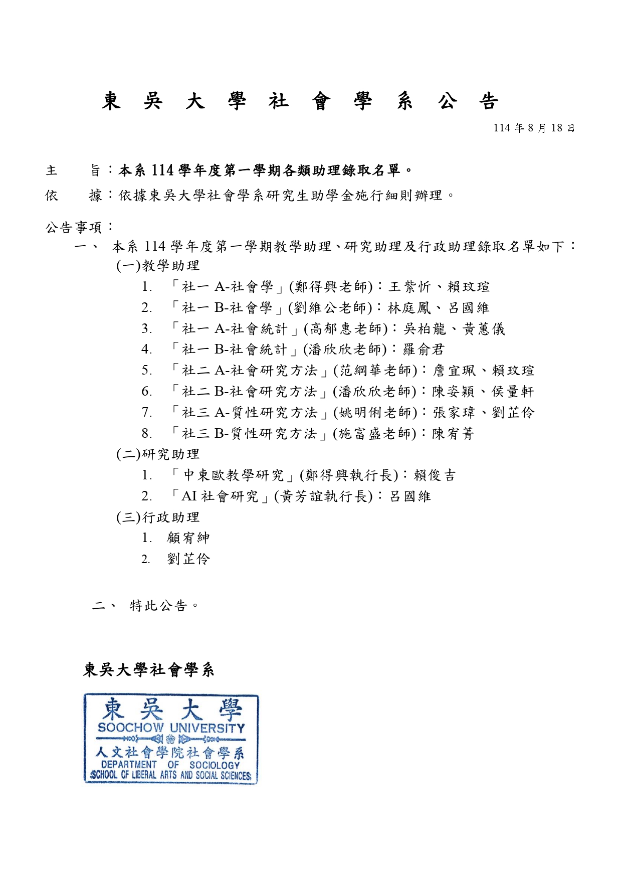 - 「社一A-社會學」(鄭得興老師):王紫忻、賴玟瑄