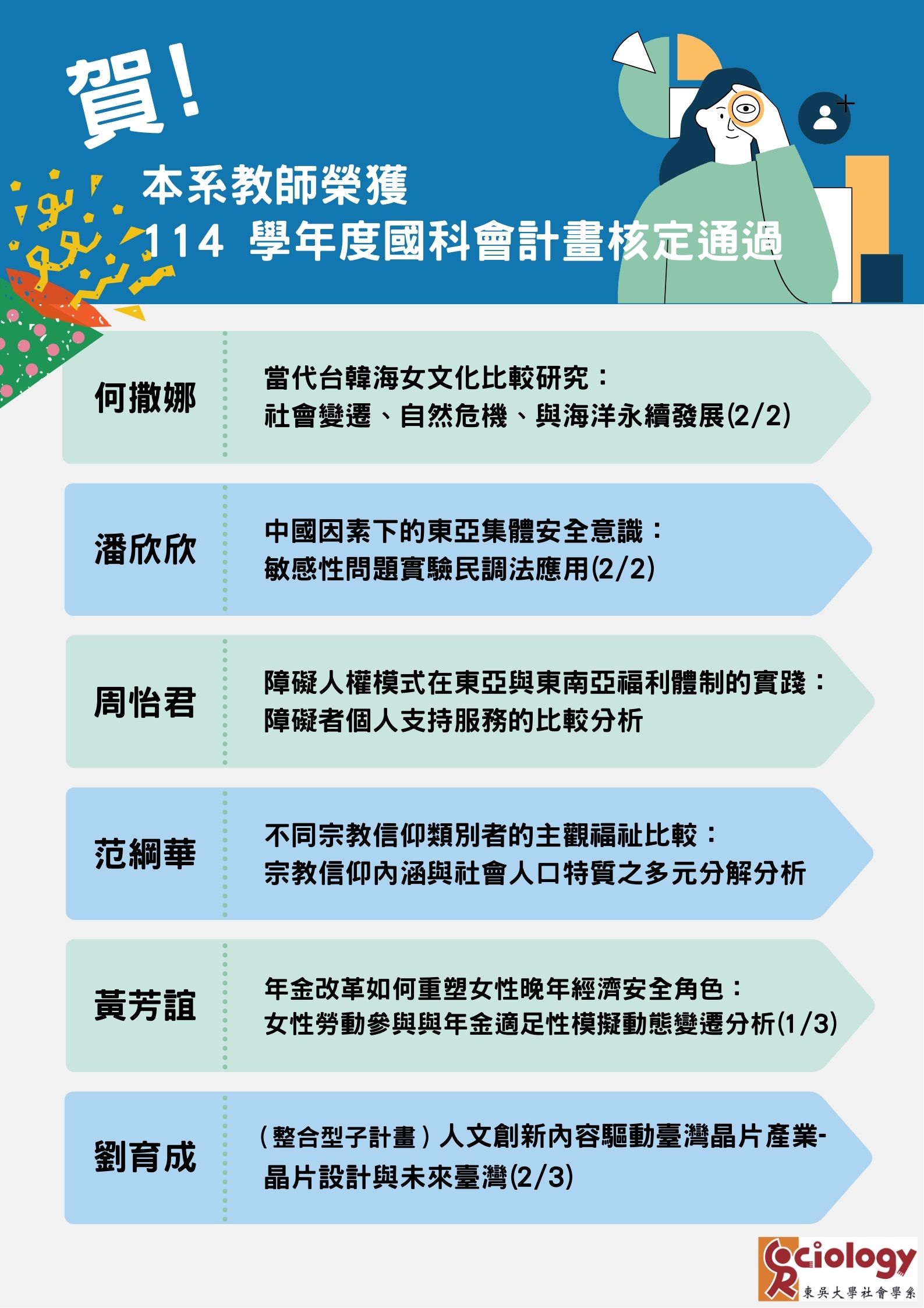 [賀榜]本系教師榮獲 114 學年度國科會計畫補助