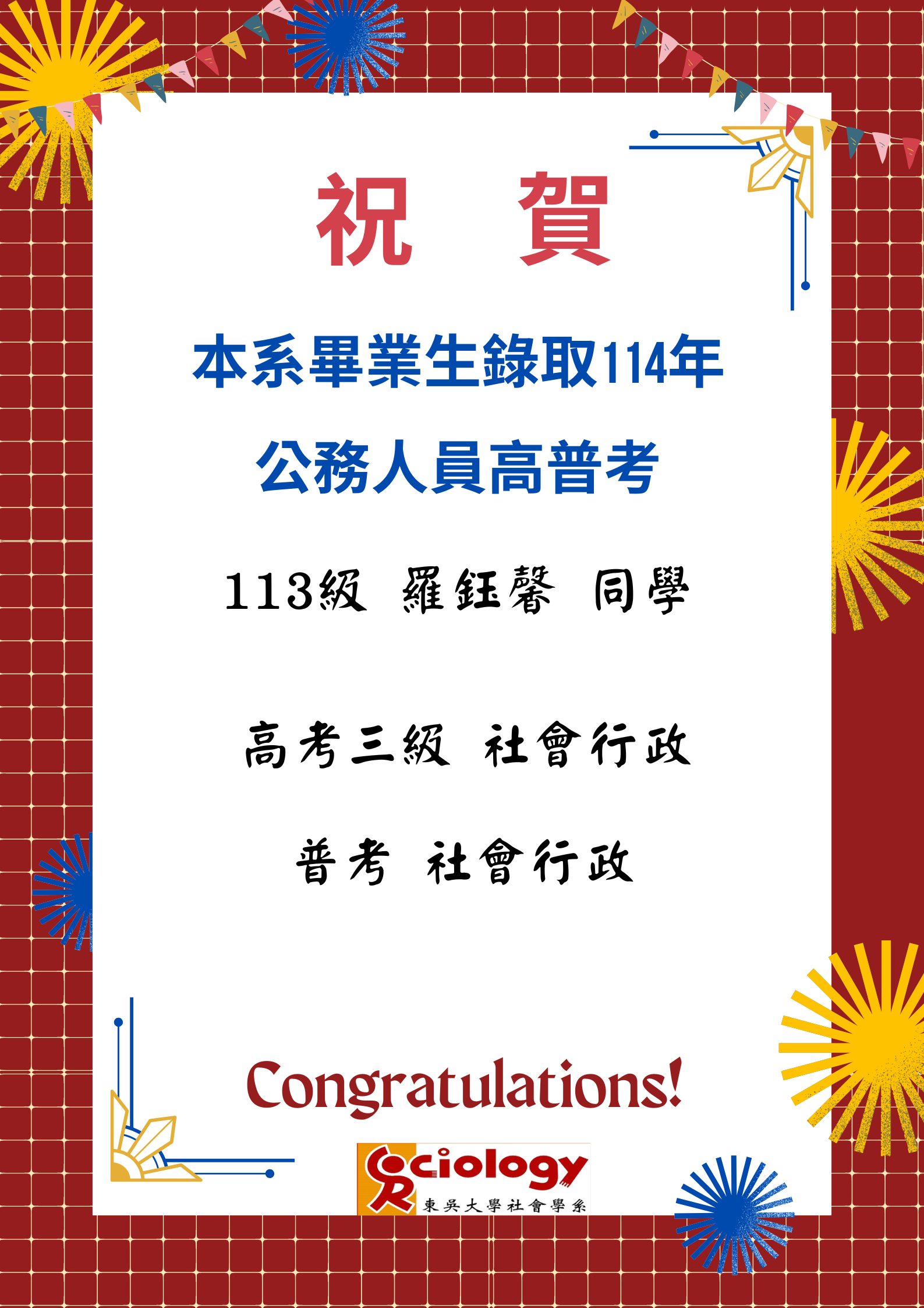 [賀榜]恭賀本系羅鈺馨同學錄取114年高普考金榜題名