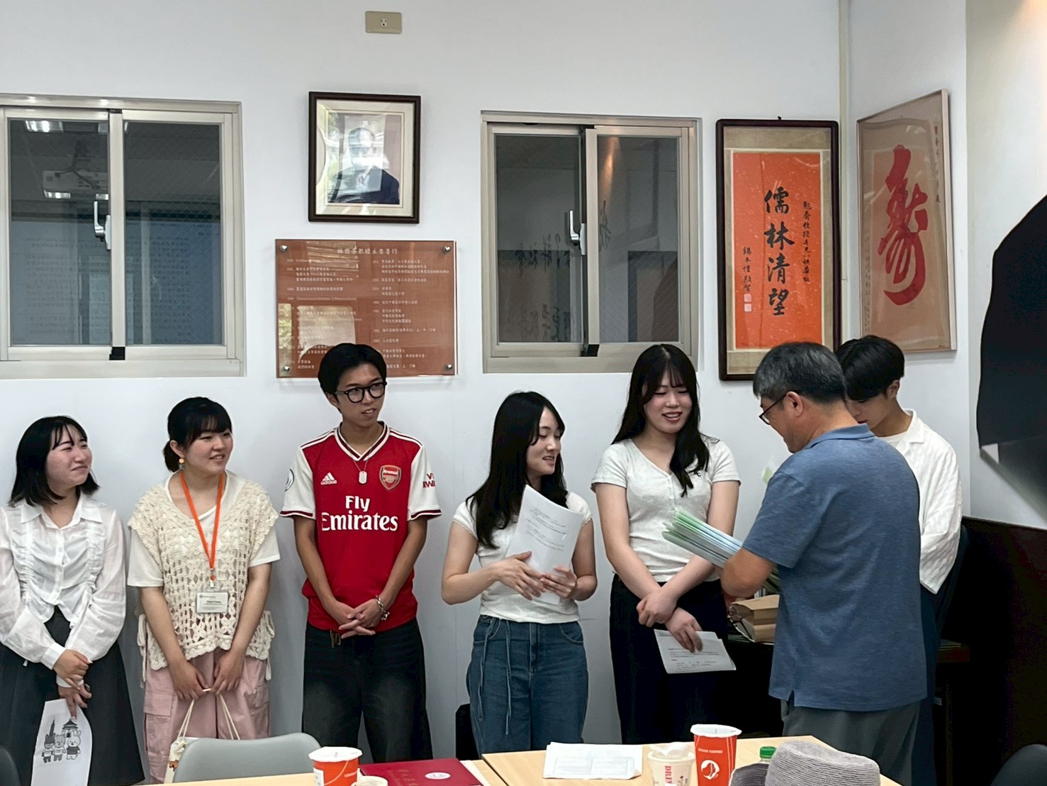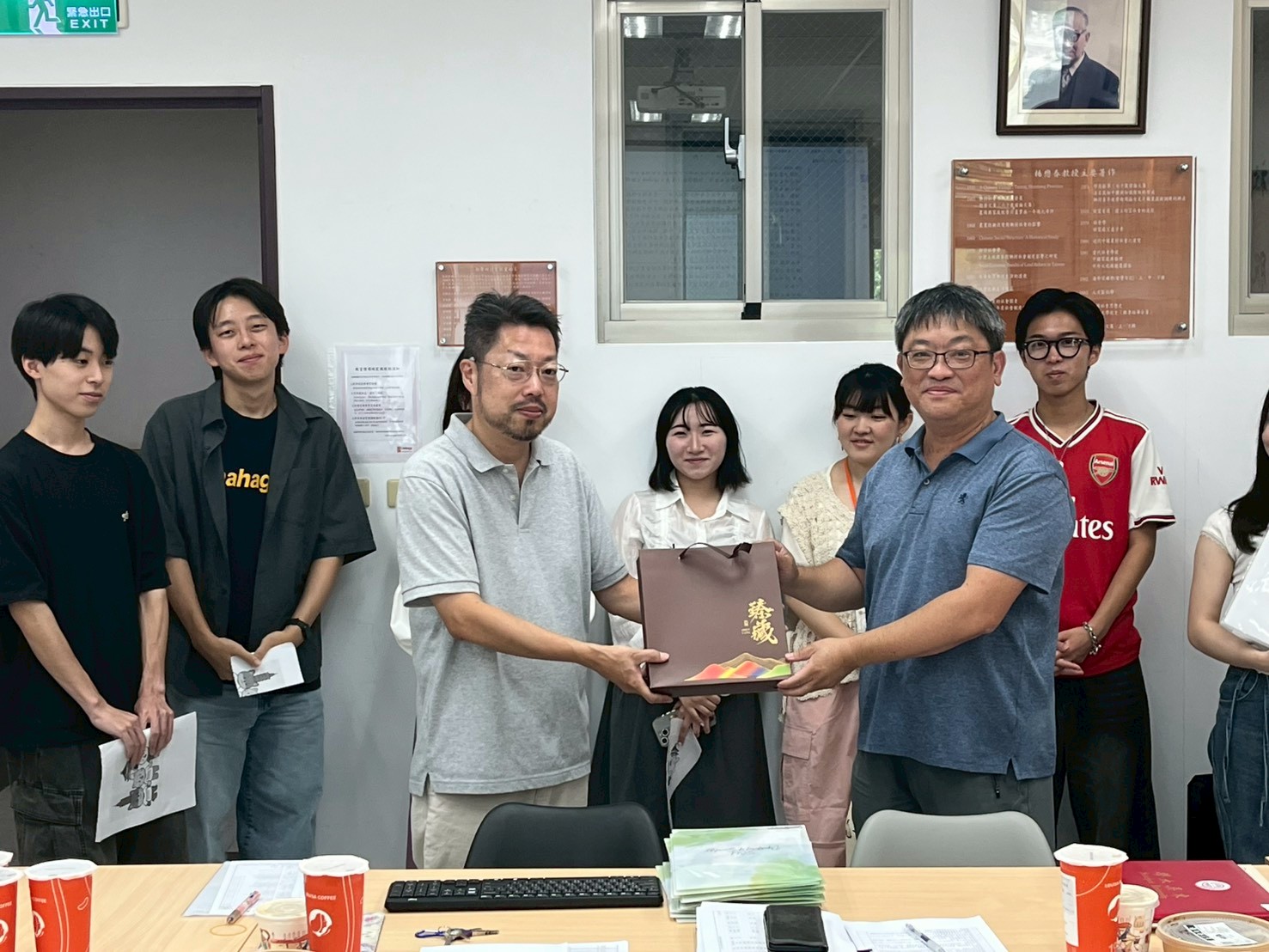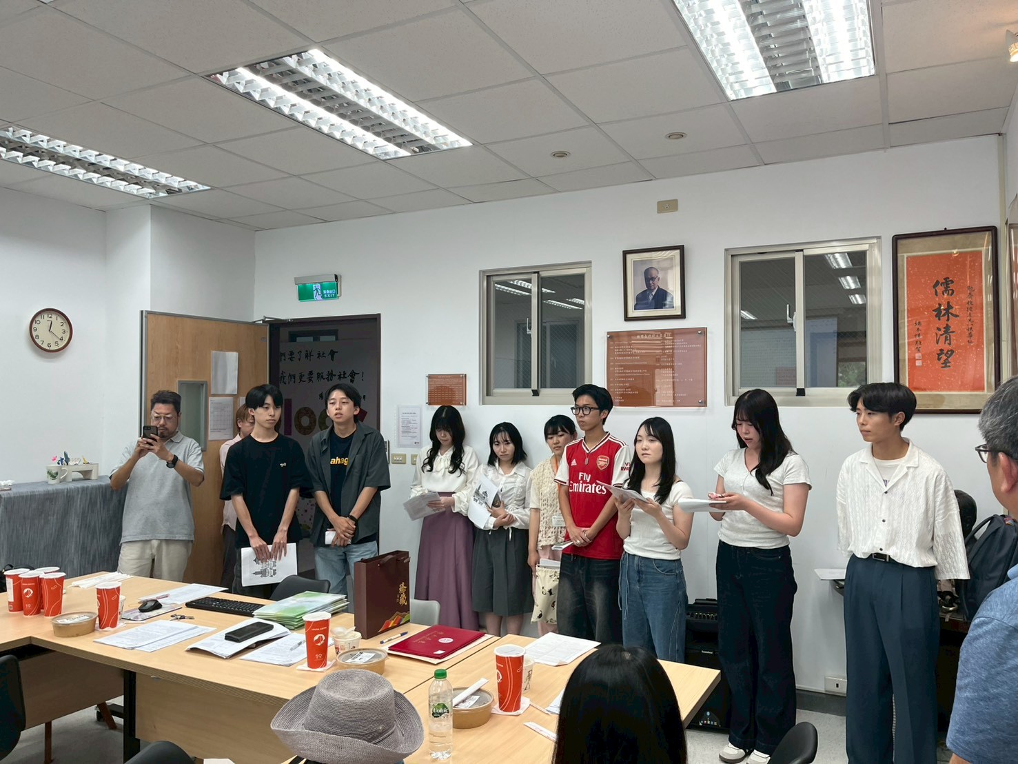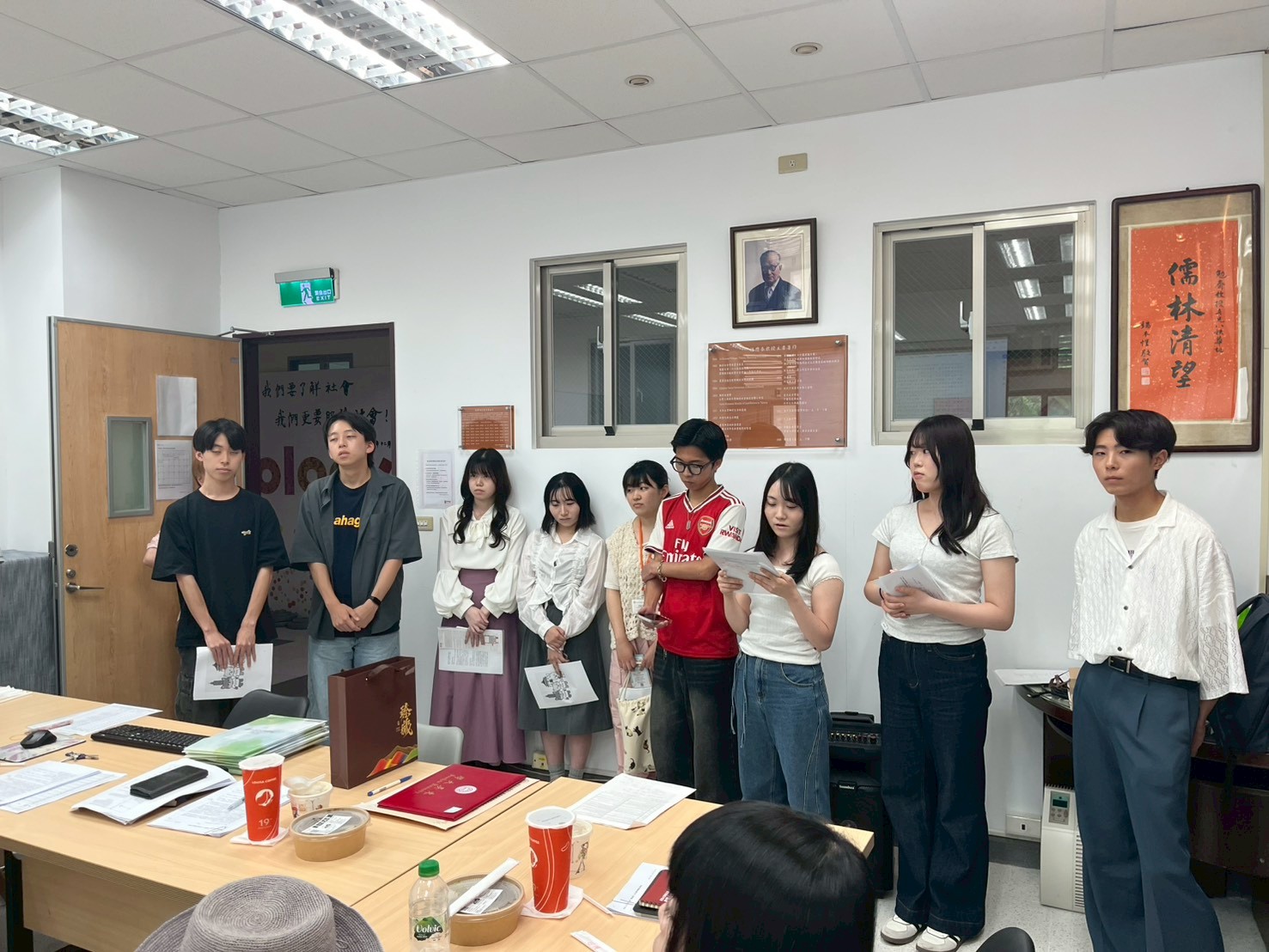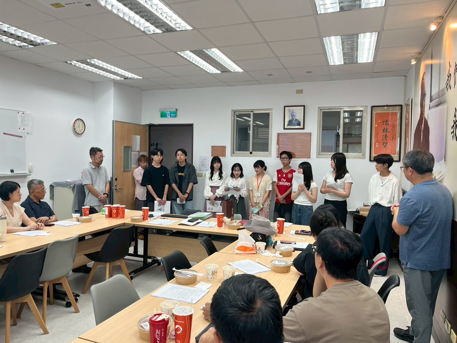 8/31至9/10日本京都立命館大學產業社會學部由鎮目真人教授帶領共12名師生來訪,進行移地教學。在此期間主要由黃芳誼老師進行接待,並安排立命館大學學生參訪總統府、人權博物館、故宮博物院等多個單位,也到北投、淡水等地進行文化考察,另外也請到姚明俐老師、葉崇揚老師授課。9/9離台前夕,得興主任特別邀請日本師生至系上會議時間,與本系教師們進行交流。在致贈紀念品互相道別後,也約定12月本系至立命館大學移地教學時,大家再次相見。
