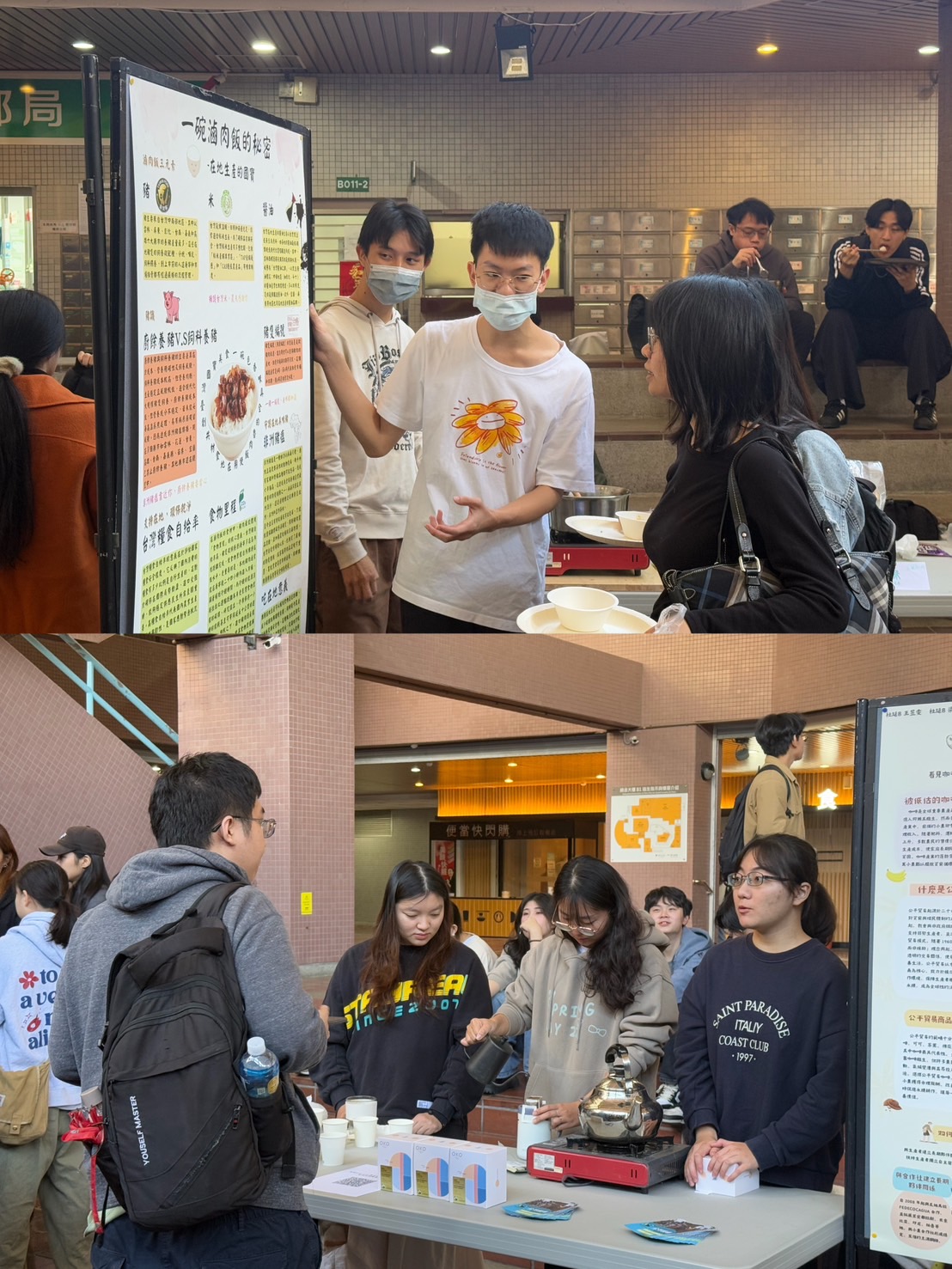 除了深度內容,各組同學的投入更是活動成功的關鍵。每一組都以扎實的研究、清晰的展示方式與耐心的現場講解,讓參與的師生們不僅吃得愉快,更能「吃得有意義」。透過同學們的說明,才真正理解飲食背後的永續議題比想像中更貼近生活。