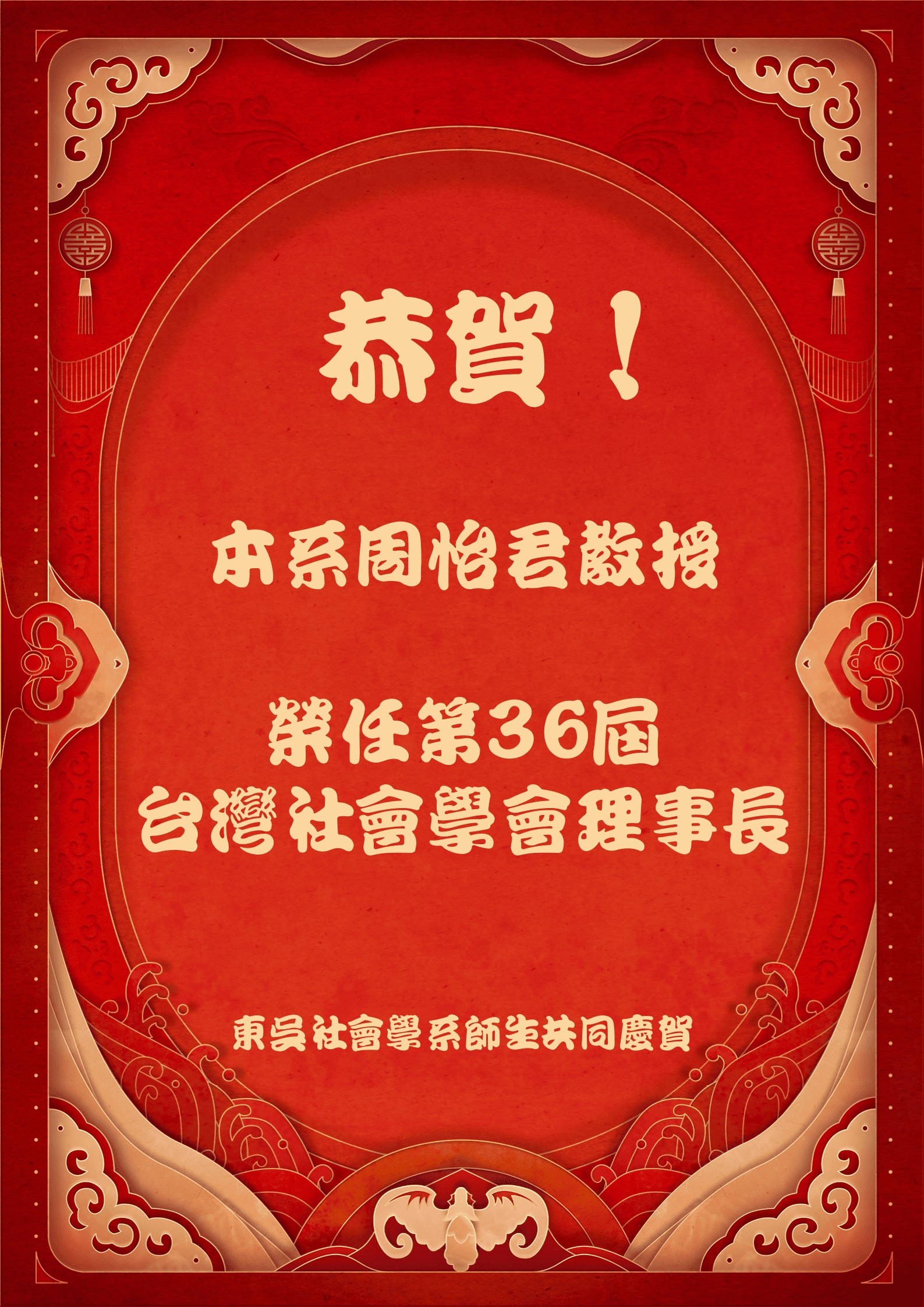 【公告】恭賀本系周怡君教授榮任第36屆台灣社會學會理事長